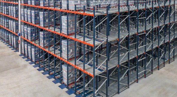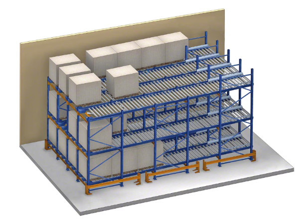 Actually, in a FIFO method, pallets are loaded from one side and removed from the other side. The racks are not straight; they are slightly tilted. Because of this, pallets move forward on rollers easily, due to gravity. Well, you do not need to push them manually.