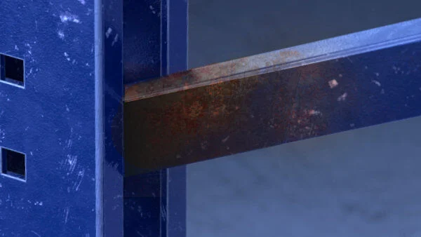 • Environmental exposure corrosion: steel elements become rusted due to moisture and chemicals. Corrosion decreases the load bearing capacity. You guard racks with coating and restricted storage areas.
